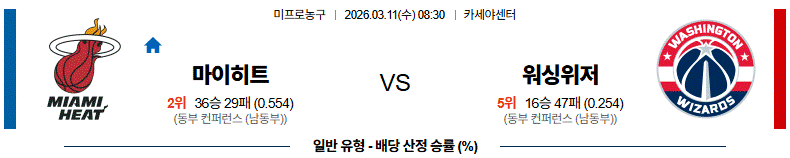 # 홈팀 : 마이애미(36승29패)