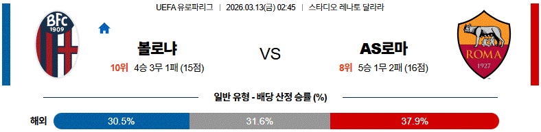 볼로냐는 홈에서 안정적인 수비와 역습을 통해 실리적인 경기 운영을 펼칠 가능성이 높은 팀입니다.