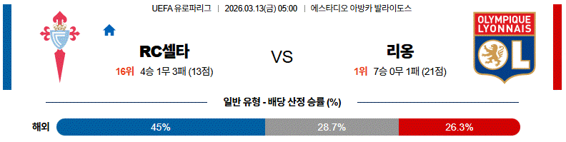리옹 역시 공격 전개 능력이 뛰어나 득점 기회를 만들 수 있는 팀입니다.