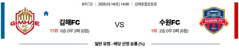 경기 양상은 김해FC가 중원 압박을 통해 경기 템포를 끌어올리고 수원FC가 역습과 빠른 공격 전개로 대응하는 흐름이 예상됩니다.