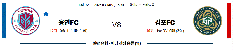 경기 양상은 용인FC가 점유율을 높이며 공격적으로 나서고 김포FC가 수비 이후 역습으로 대응하는 흐름이 될 가능성이 있습니다.