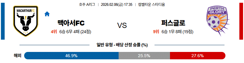 홈에서의 공격 전개와 경기 주도권 측면에서는 맥아서 FC가 확실한 우위를 보이는 매치업입니다.