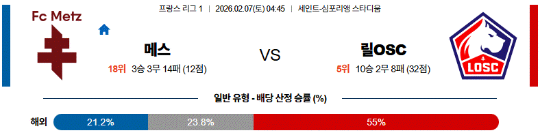 메스의 수비 저항은 변수지만, 득점은 제한적인 흐름이 유력해 보입니다.
