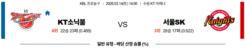 # 홈팀 : 수원 KT 소닉붐 (22승23패)