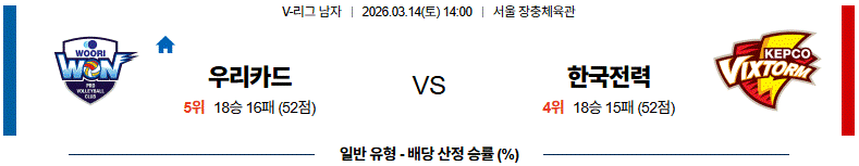 # 홈팀 : 우리카드(18승16패)