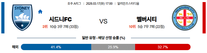 결국 이 경기는 시드니FC가 상대 후방 불안을 정확히 물고 늘어지며 주도권을 잡을 흐름으로 보는 쪽이 자연스럽다.