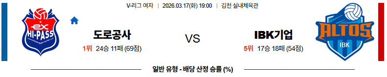 3월 17일 V-리그 여자부 한국 도로공사 vs IBK 기업은행 배구분석