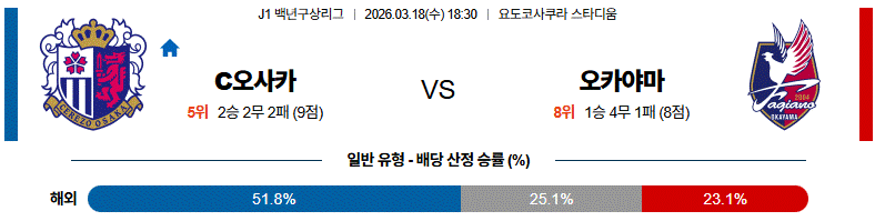 특히 오카야마의 벌어진 3선 간격을 누가 먼저 물고 늘어지느냐를 보면, 답은 세레소 오사카 쪽으로 기운다.