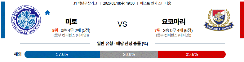 미토홀릭이 중앙에서 한 번 끌어당기고, 측면 반칸을 찢은 뒤 다시 박스 안으로 찔러 넣는 전개를 반복하면 요코하마 마리노스는 수비 기준점을 잃을 가능성이 높다.
