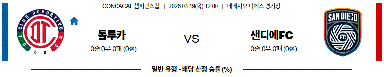 전체적으로는 홈 이점과 공세적인 운영이 가능한 톨루카가 조금 더 우세한 흐름을 만들 수 있지만, 샌디에FC의 역습 저항도 만만치 않은 승부가 예상됩니다.