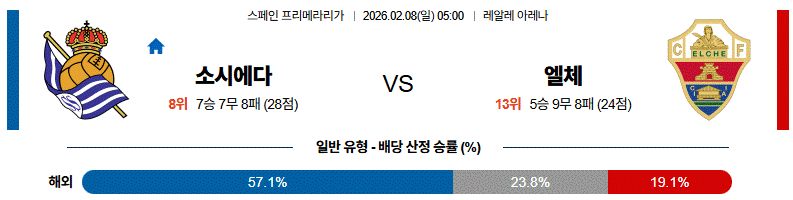 다만 엘체가 내려앉는 구도가 길어질수록 찬스는 소시에다드 쪽으로 누적될 가능성이 큽니다.