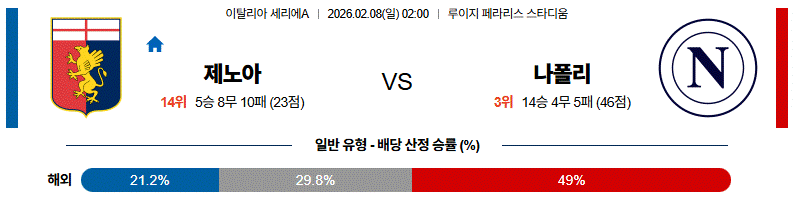 이 경기는 제노아의 체력 저하 구간과 나폴리의 침투·세트피스 완성도가 맞부딪히는 구도다.