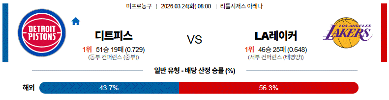 3월 24일 【 NBA 】 NBA 디트피스 vs LA레이커 NBA분석