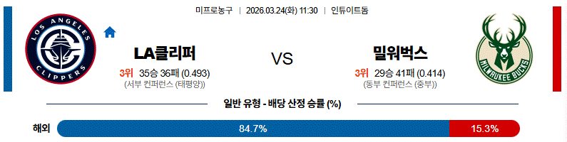 클리퍼가 수비 집중력을 유지할 경우 접전 양상도 가능하지만, 전체적인 흐름은 밀워벅스 쪽으로 기울 가능성이 있습니다.