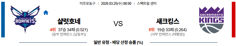 3월 25일 【 NBA 】 샬럿호네 vs 새크킹스 NBA분석