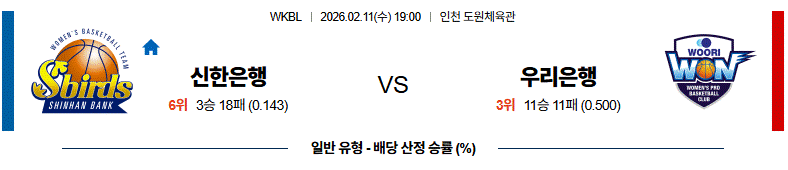 가장 최근의 맞대결에서는 신한은행이 원정에서 56-60 패배를 기록했다.