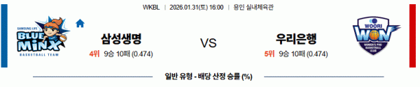 우리은행은 직전 KB전 패배에도 불구하고 경기 내용은 나쁘지 않았다. 김단비의 트리플더블을 중심으로 공격 전개는 안정적이었고 오니즈카 아야노의 외곽 득점력도 꾸준히 유지되고 있다. 다만 4쿼터 수비 집중력과 리바운드 싸움에서 흔들렸던 부분은 보완 요소다. 반면, 삼성생명은 3연승 흐름이지만 리바운드 열세가 반복되고 있고 홈 성적도 3승6패로 강점이 크지 않다. 최근 맞대결 성적은 팽팽하지만 전체 전력 완성도와 원정 안정감을 감안하면 우리은행이 후반 주도권을 되찾으며 승리를 가져갈 가능성이 높다.