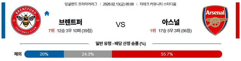 또한 아스날의 중원 라인은 공을 잃어버린 직후 곧바로 압박을 재가동하는 성향이 강해, 브렌트퍼드처럼 허리가 쉽게 갈라지는 팀을 상대로는 세컨볼 경쟁력에서도 우위를 점할 가능성이 크다.