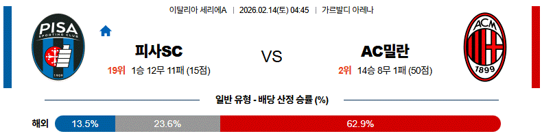 전체적으로 AC밀란의 공격 흐름이 길어질 것으로 보이며, 피사가 얼마나 버텨내느냐가 관건입니다.