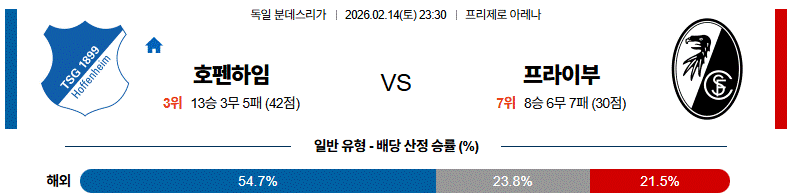 호펜하임은 점유율 기반 전개로 안정적인 흐름을 만들려 할 전망입니다.