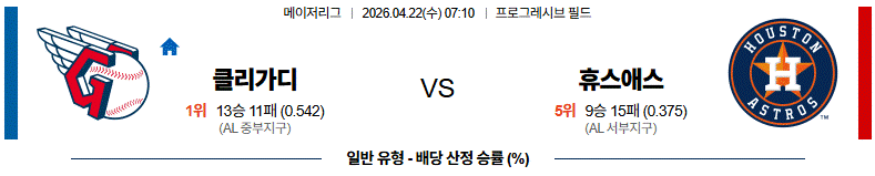 [메이저리그] 04월22일 휴스턴 vs 클리블랜드 경기분석