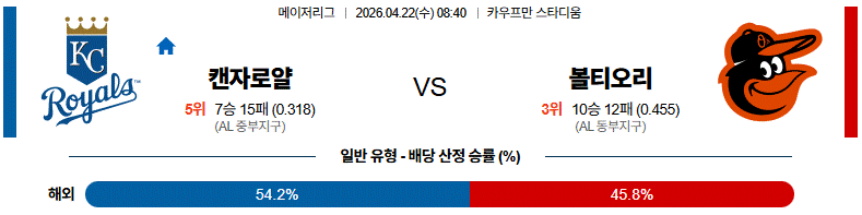 [메이저리그] 04월22일 볼티모어 vs 캔자스시티 경기분석