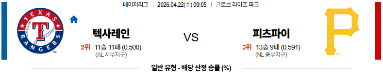 [메이저리그] 04월22일 피츠버그 vs 텍사스 경기분석