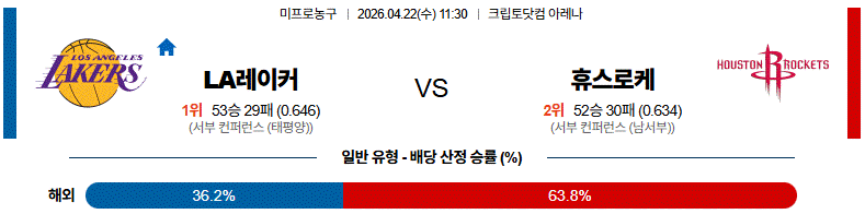 [NBA] 04월22일 휴스턴 vs LA레이커스 경기분석
