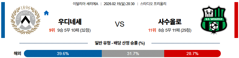 우디네세는 수비 안정과 역습 전환으로 흐름을 만들려는 모습이 예상되지만, 사수올로의 공격 전개력 앞에서는 부담이 있을 수 있습니다.