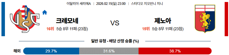 크레모네는 수비 중심의 운영으로 실점을 억제하며 역습 기회를 노릴 전망입니다.