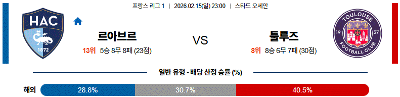 르아브르는 수비적으로 버티며 역습을 노리겠지만 공격 전개에서 한계가 있을 수 있습니다.