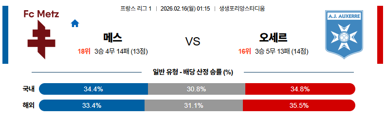 메스는 홈에서 수비 집중력을 앞세워 안정적인 운영을 시도할 전망입니다.