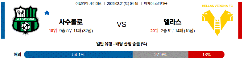 전체적으로는 사수올로의 공세 속에서 엘라스의 수비 집중력이 승부의 변수가 될 경기입니다.