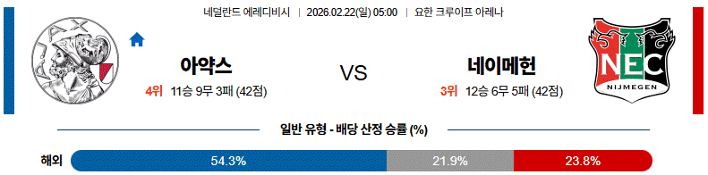 전체적으로는 아약스의 일방적인 공세 속에서 네이메헌이 얼마나 버틸 수 있는지가 관건입니다.