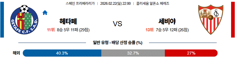 헤타페는 수비 중심으로 흐름을 만들어가겠지만, 세비야는 점유율과 빌드업의 완성도로 경기를 주도할 가능성이 큽니다.