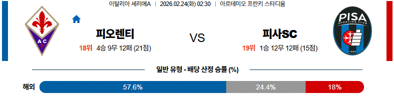 전체적으로는 피오렌티가 경기 템포와 주도권에서 우위를 보일 것으로 예상됩니다.